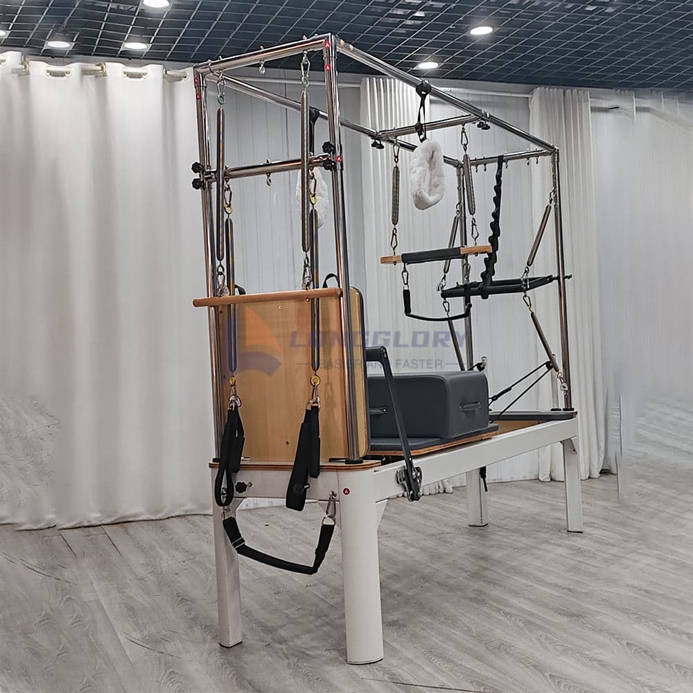 See kolm ühes Pilatese Cadillac Reformer võimaldab kasutajatel sooritada reformeriharjutusi, cadillaci torni venitusi ja dünaamilist põhitreeningut ühel masinal, maksimeerides ruumi ja funktsionaalsust. Alumiiniumist kolm ühes Pilatese Cadillac Reformer, mis sobib ideaalselt pilatese stuudiotesse, taastusravikeskustesse, boutique fitness-saalidesse ja kodustesse treeningruumidesse, toetab laia valikut liigutusi, sealhulgas jalgade ringe, veeremist, väljahüppeid, südamiku stabiliseerimist ja lülisamba joondamise harjutusi.