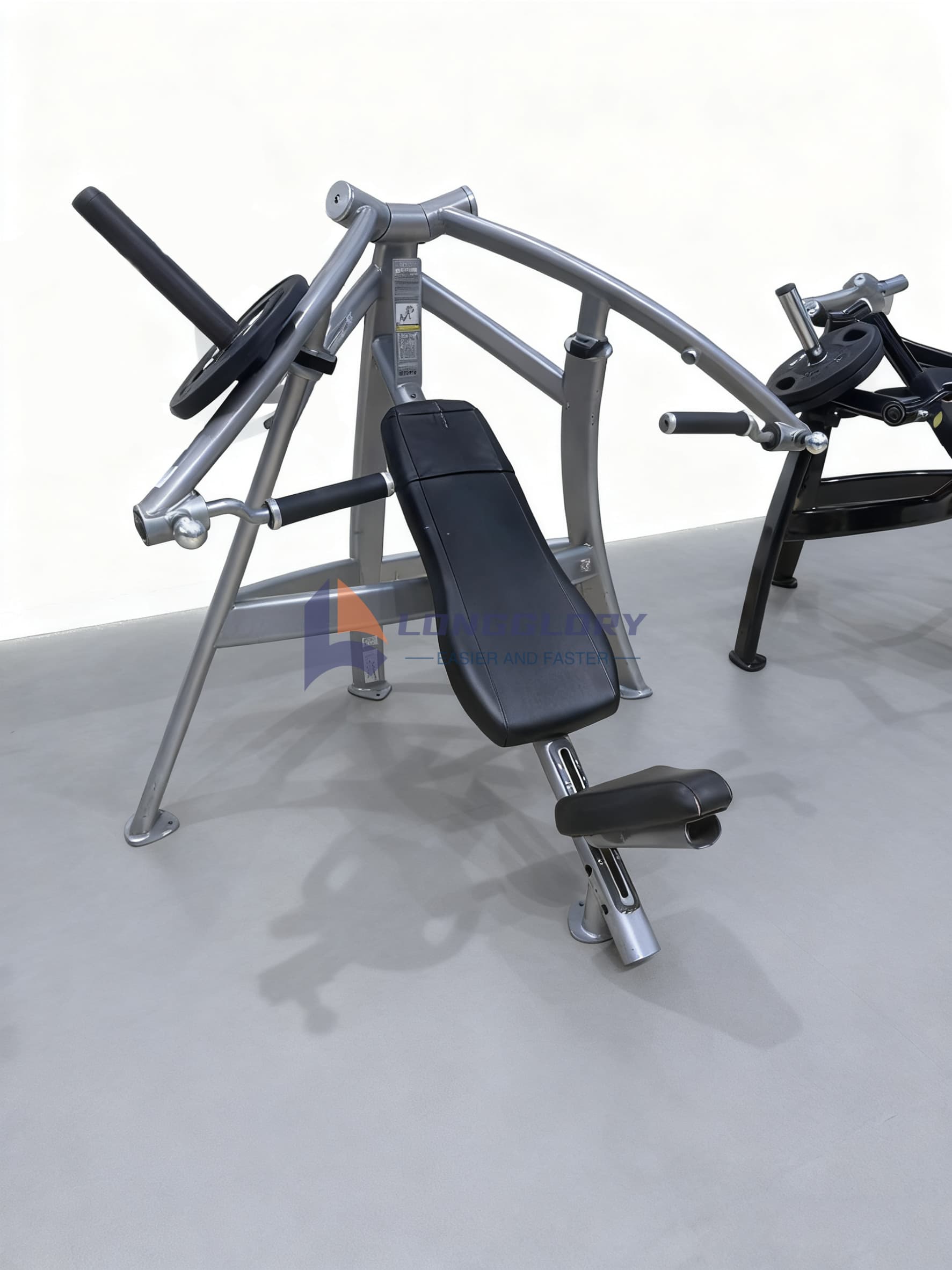 Kaubanduslik kallakuga rinnapress on ehitatud tugeva terasraamiga, et tagada pikaajaline vastupidavus ja stabiilsus kõrgsageduslikul kommertskasutusel. Selle ergonoomiline kaldenurk aitab aktiveerida ülaosa rinnalihaseid tõhusamalt kui lamedad vajutamisliigutused, muutes Commercial Incline Chest Pressi oluliseks seadmeks rindkere jõutreeningul kaubanduslikes jõusaalides.