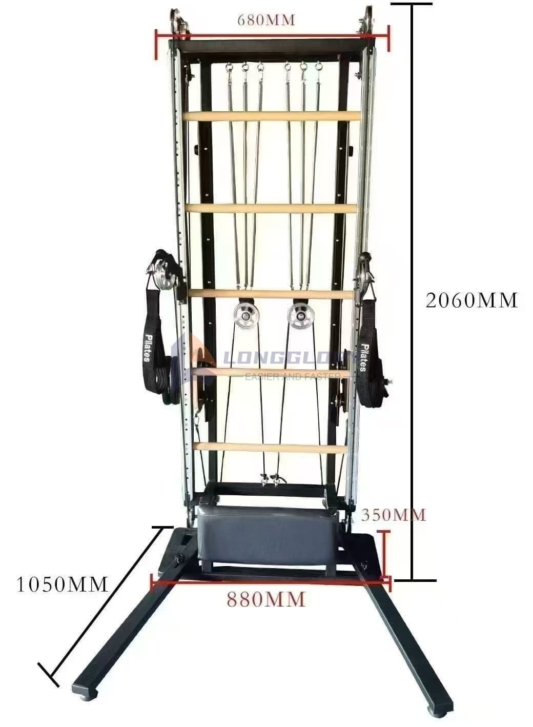 Metallist Pilatese rihmarattatorn pakub mitmeid treeningvõimalusi, sealhulgas harjutusi seistes ja istudes, venitus- ja vastupidavustreeningut. Selle ruumisäästliku disaini tõttu sobib metallist Pilatese rihmarattatorn nii kaubanduslikesse Pilatese stuudiotesse kui ka kodustesse jõusaalidesse. Olenemata sellest, kas olete algaja või kogenud praktiseerija, pakub Metal Pilatese rihmarattatorn ohutut ja tõhusat viisi jõu, painduvuse ja tasakaalu suurendamiseks.
