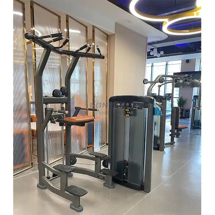 Pin Loaded Assist Dip Chin on mitmekülgne ja oluline jõusaalivarustus, mis on loodud ülakeha jõu ja lihaste tugevuse arendamiseks. Tugeva terasraami ja ergonoomiliste tugipatjadega masin tagab stabiilsuse, mugavuse ja vastupidavuse iga treeningu ajal.