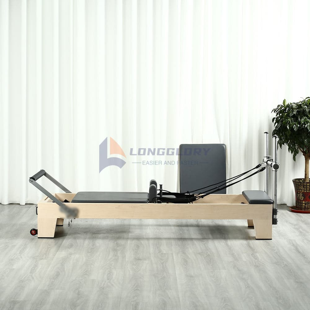 Sellel Yoga Maple Wood Pilates Reformeril on sujuvalt libisev kelk, reguleeritav jalgraam, toetavad õlaplokid ja suure vastupidavusega vedrud, et pakkuda mitmekülgseid Pilatese treeninguid. See aitab tugevdada südamikku, parandada kehahoiakut, suurendada paindlikkust ja toetada taastumistreeningut – muutes selle ideaalseks algajatele, spordihuvilistele ja professionaalsetele juhendajatele.